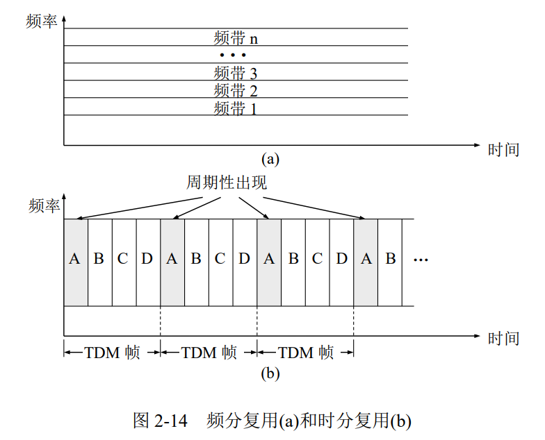 时分复用 TDM:所有用户是在不同的时间占用同样的频带宽度