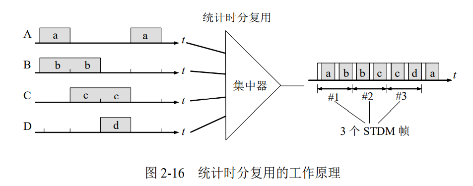 统计时分复用 STDM:改进的时分复用,明显提高信道的利用率